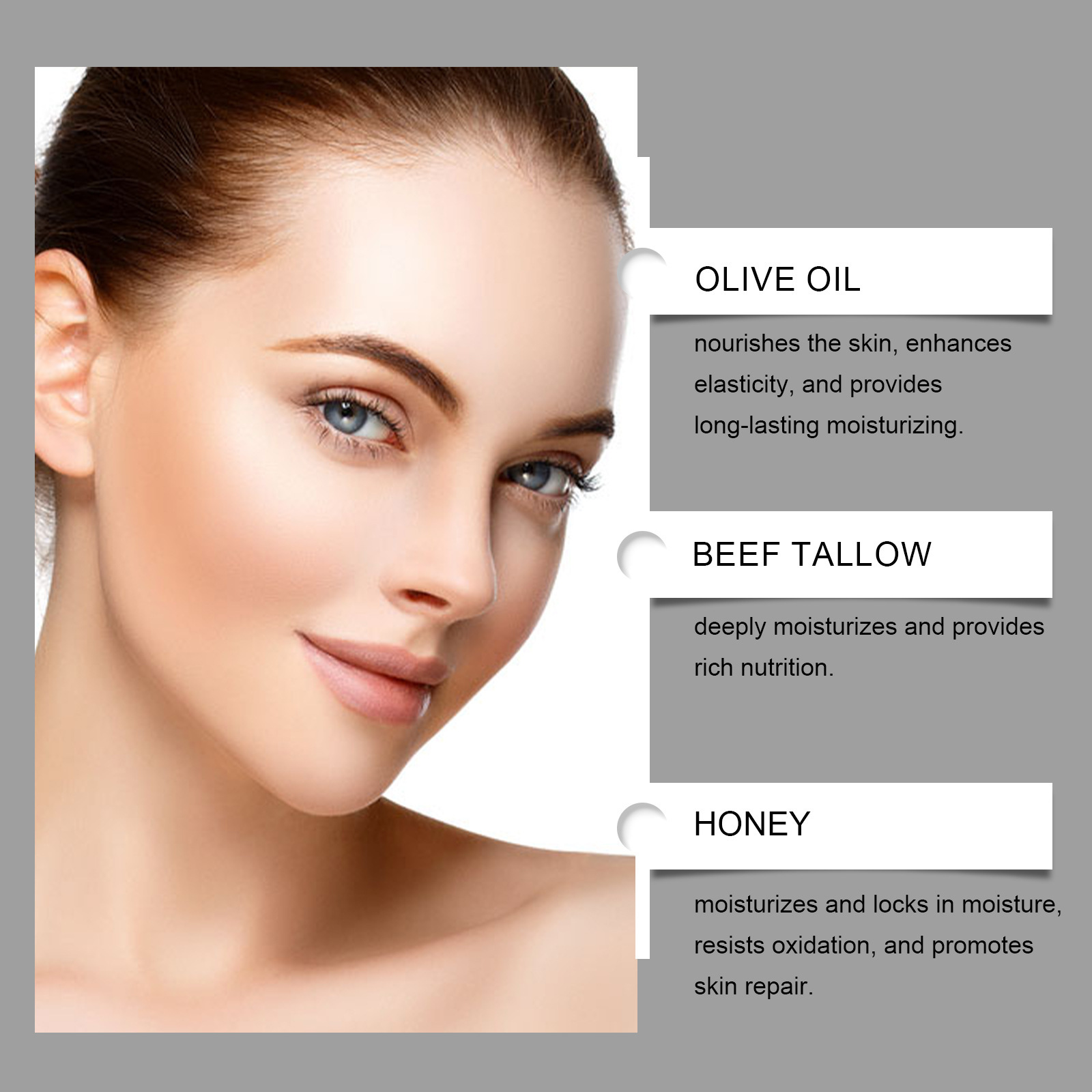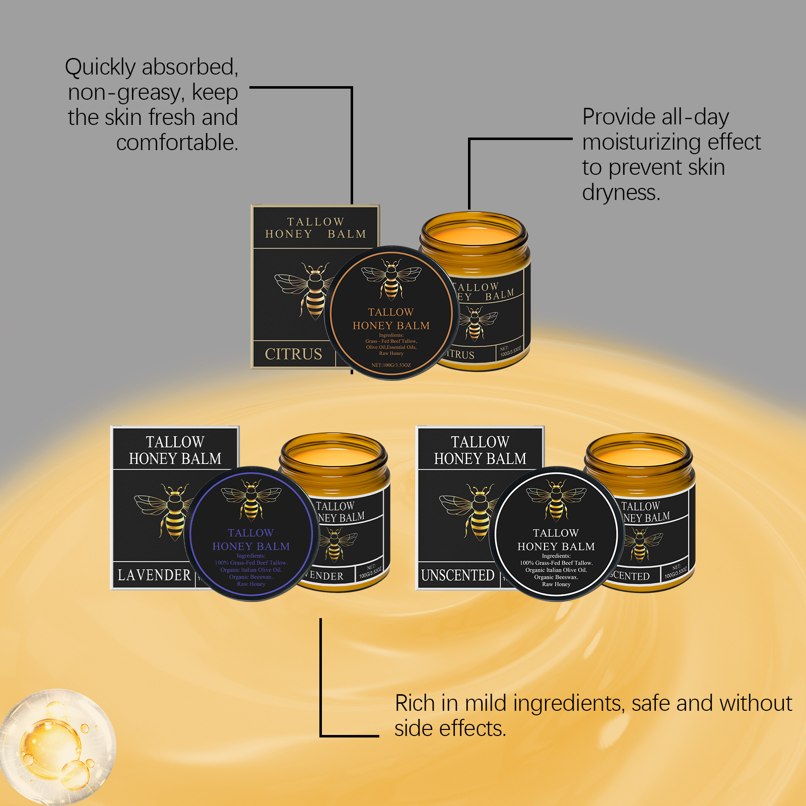 Natural Ingredients: Made with tallow and honey for deep moisturizing.